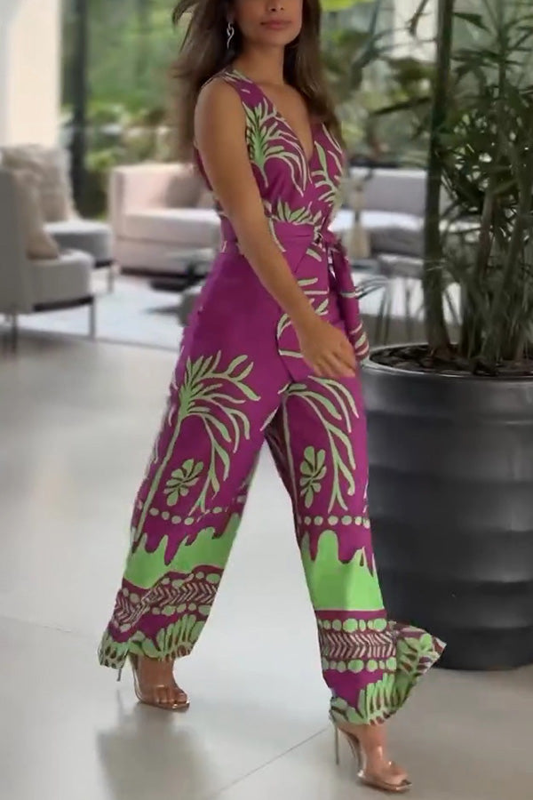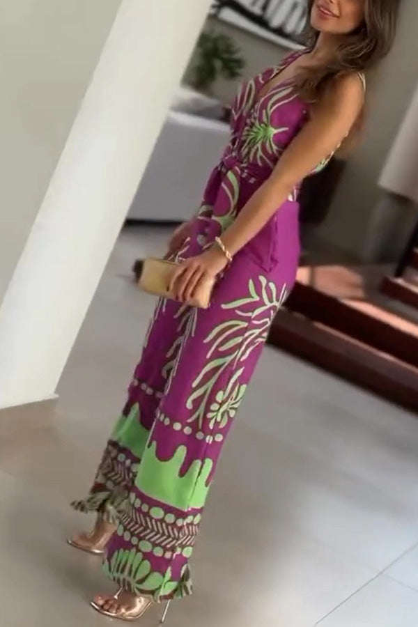 Hergestellt für sonnige Tage und Abende im Freien, ist dieser Anzug eine Explosion von Farben und Frische. Das ärmellose Design und der leichte Stoff bieten maximalen Komfort, selbst an den heißesten Tagen. Der Taillengürtel betont deine natürlichen Kurven, während der weite Beinanschnitt einen eleganten und lässigen Touch verleiht. Perfekt für Urlaube, Aperitifs oder einfach nur, um dich jeden Tag wunderschön zu fühlen.